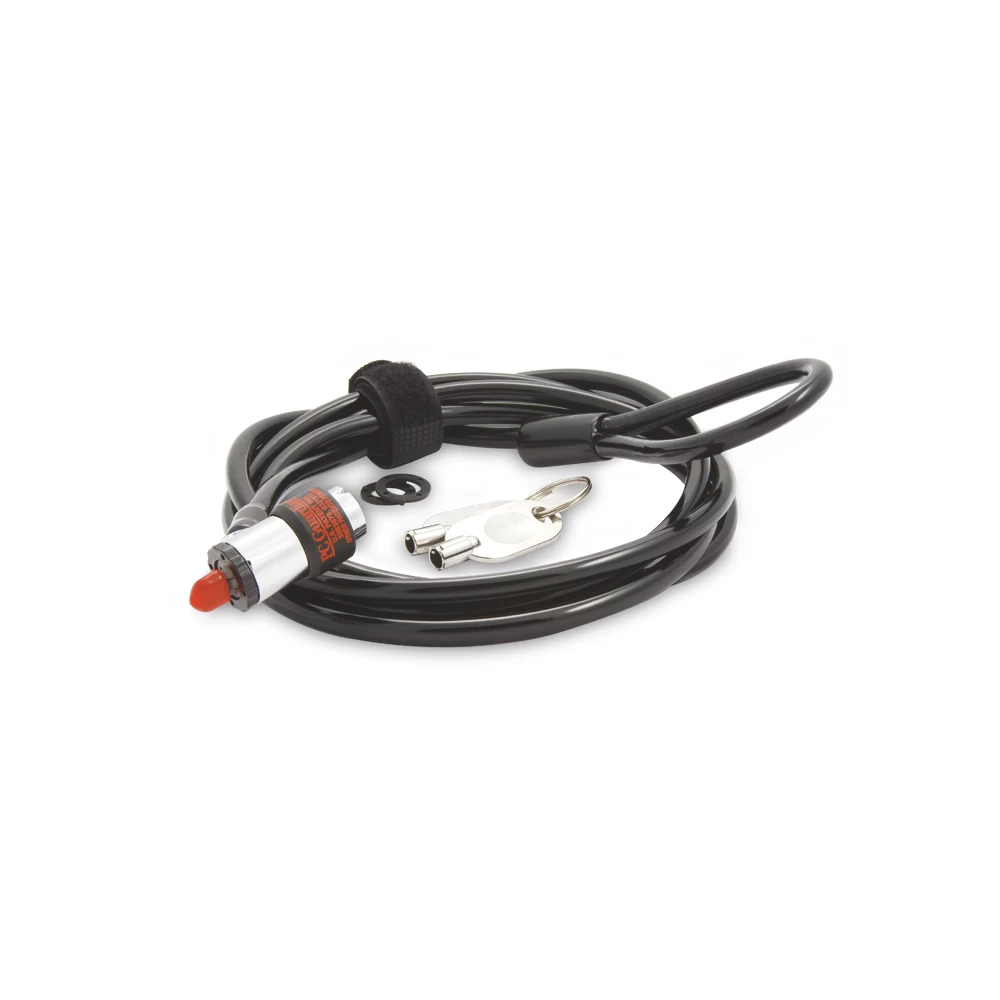 Très pratique : Ce câble de 1,80m avec lasso s’adapte aisément aux différentes configurations de salles ou bureaux et s’attache facilement (sans clé) à tout point d’ancrage fixe grâce à sa serrure haute sécurité « Push value Head ».