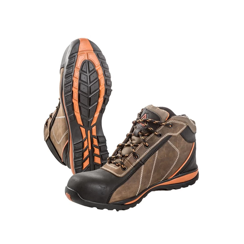Chaussure haute bicolore en cuir pleine fleur nubuck, dotée d’un embout en composite et d’une semelle anti-perforation en tissu. Sa semelle extérieure en caoutchouc/EVA bicolore la rend antistatique, antidérapante et résistante aux huiles et à la chaleur.