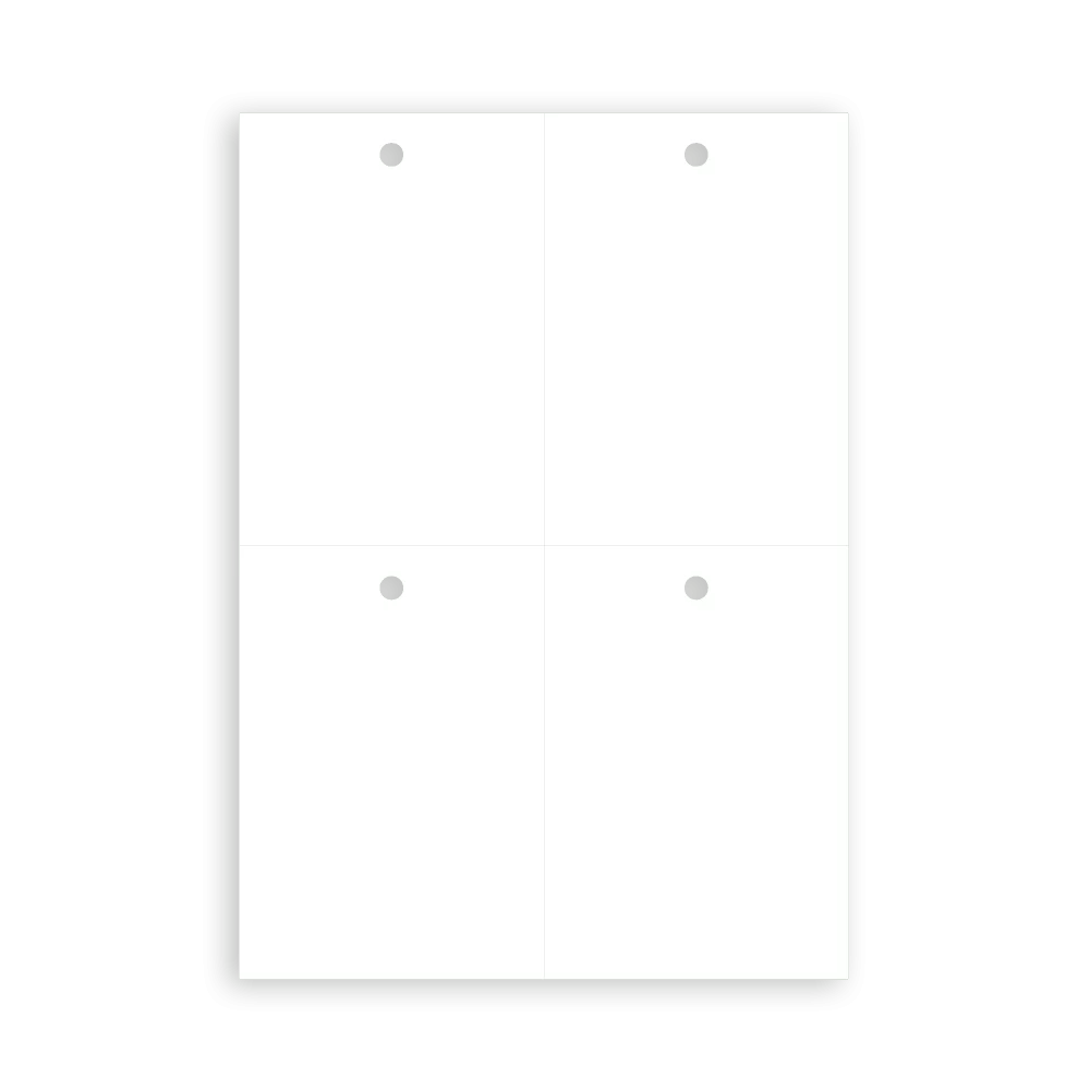 Fabriquée en Film polyéthylène blanc couché mat enduit d’un vernis à base aqueuse sur les 2 faces d’une épaisseur de 120 ou 190 μm, cette étiquette américaine est idéale pour identifier vos produits sans nécessité de collage puisqu’elle est non-adhésive. Ainsi, cela permet de remplacer la plastification de documents. L’œillet présent sur l’étiquette permet quant à lui d’y passer des fils pour pouvoir attacher solidement l’étiquette américaine polyester blanche a votre produit.