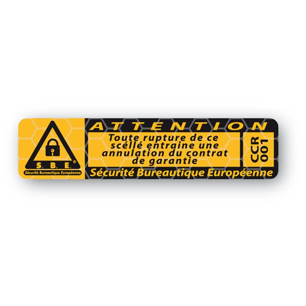 Une etiquette scellé de sécurité Safe Tech qui dissuade de la fraude