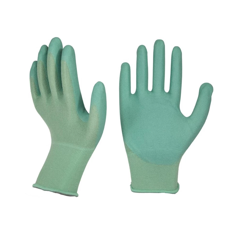 Gant en fibre de Bamboo- Jauge 15, enduction mousse de nitrile. Poignet tricot élastique. Coloris: Vert.