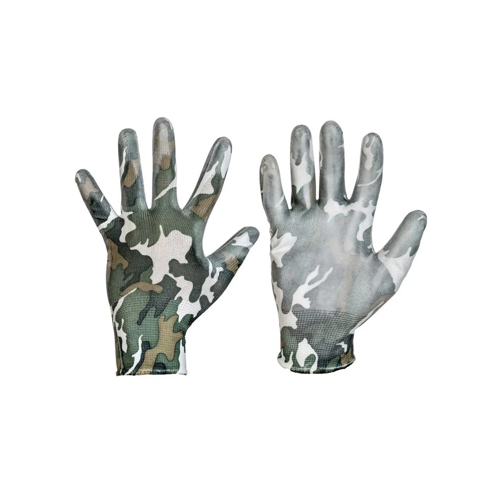 Gant camouflage en polyester enduit polyuréthane sur la paume et les doigts.