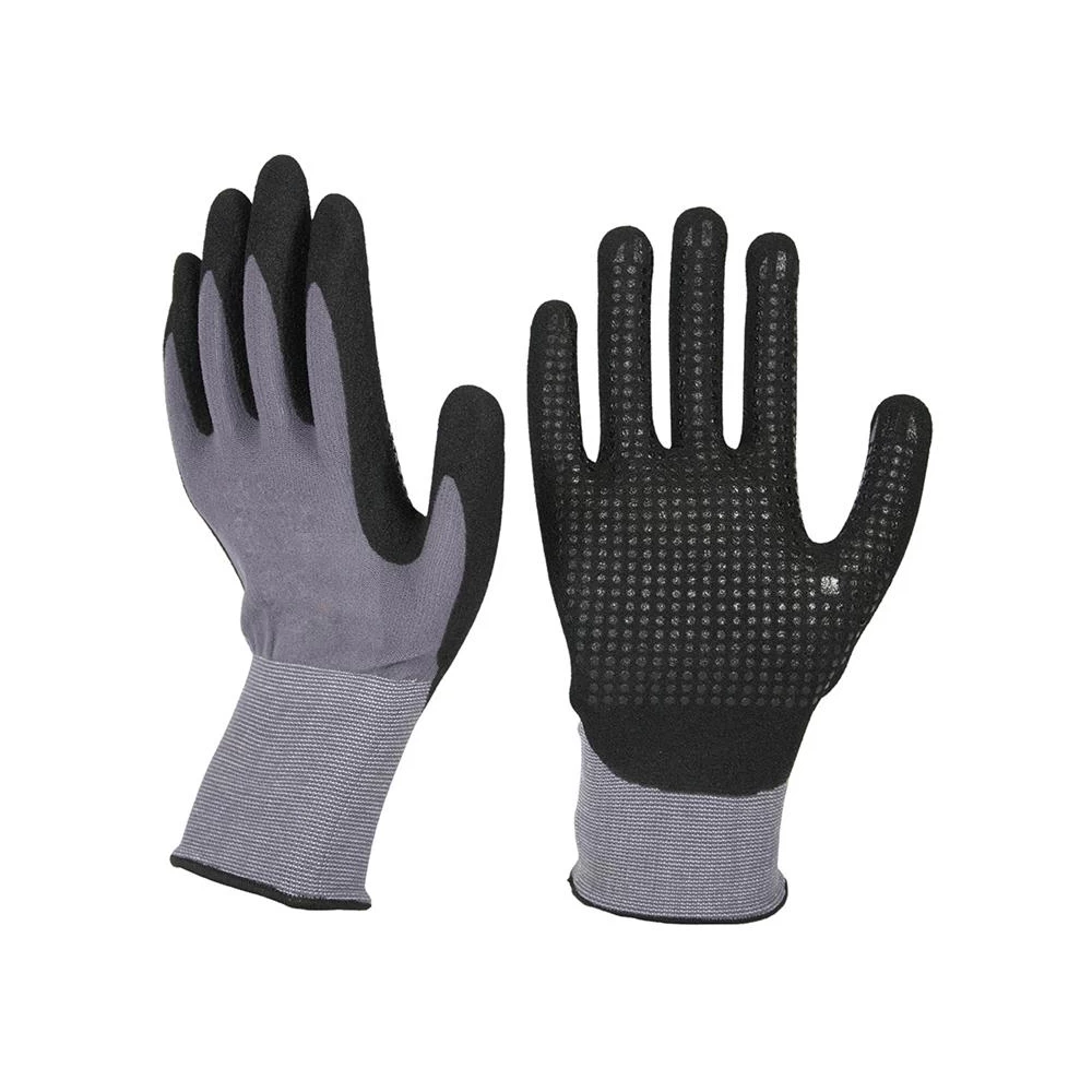 Gant en nylon/élasthanne sans coutures -Jauge 15, 3/4 enduction de nitrile. Finition sablée et picots micro en nitrile sur la paume pour une meilleure ahdérence. Poignet tricot élastique. A utiliser avec écran tactile Le gant appartient à la catégorie des EPI pour la protection contre les risque mécaniques Le gant protège l’utilisateur contre les risques mécaniques de moyenne éntité conformément aux exigences de sécurité énoncées dans la directive européenne 2016/425. Le gant n’est pas adapte au soudage, au contact d’objets chauds, d’outils tranchants et de produits chimiques.