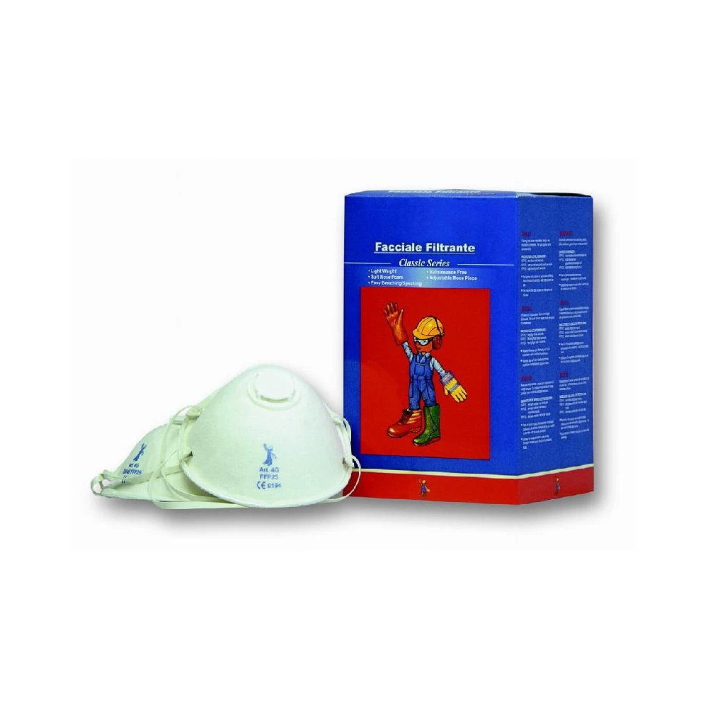 Masque FFP2 anti-poussières, léger et confortable avec une valve d’expiration ainsi que 2 élastiques. La couche extérieure est filtrante en polypropylène et la couche intérieure en coton. Pour plus de confort, la bande est en caoutchouc naturel et la barrette nasale en aluminium sans PVC.
