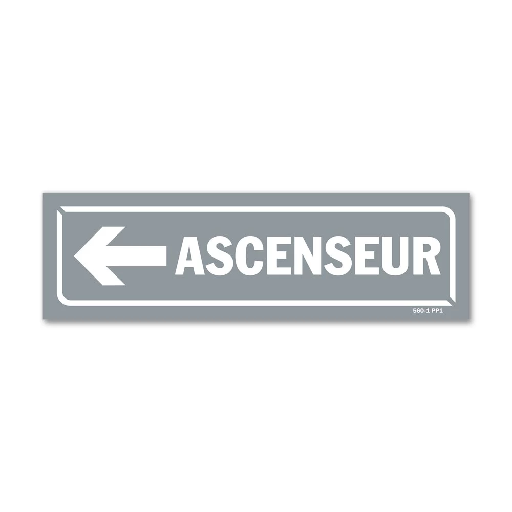 Ce panneau permet d’indiquer que l’acenceur se trouve à gauche, notament grâce à sa flèche.