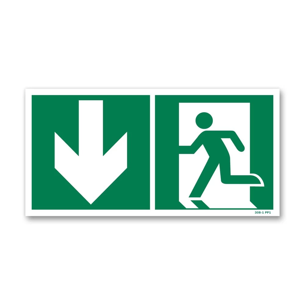 Ce panneau indique la présence d’une sortie de secours par une porte à gauche