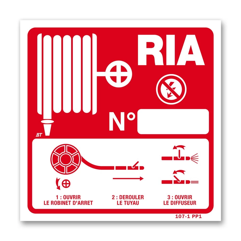Ce panneau de forme carrée symbolise la présence d’un robinet incendie armée accompagné de son mode d’emploi