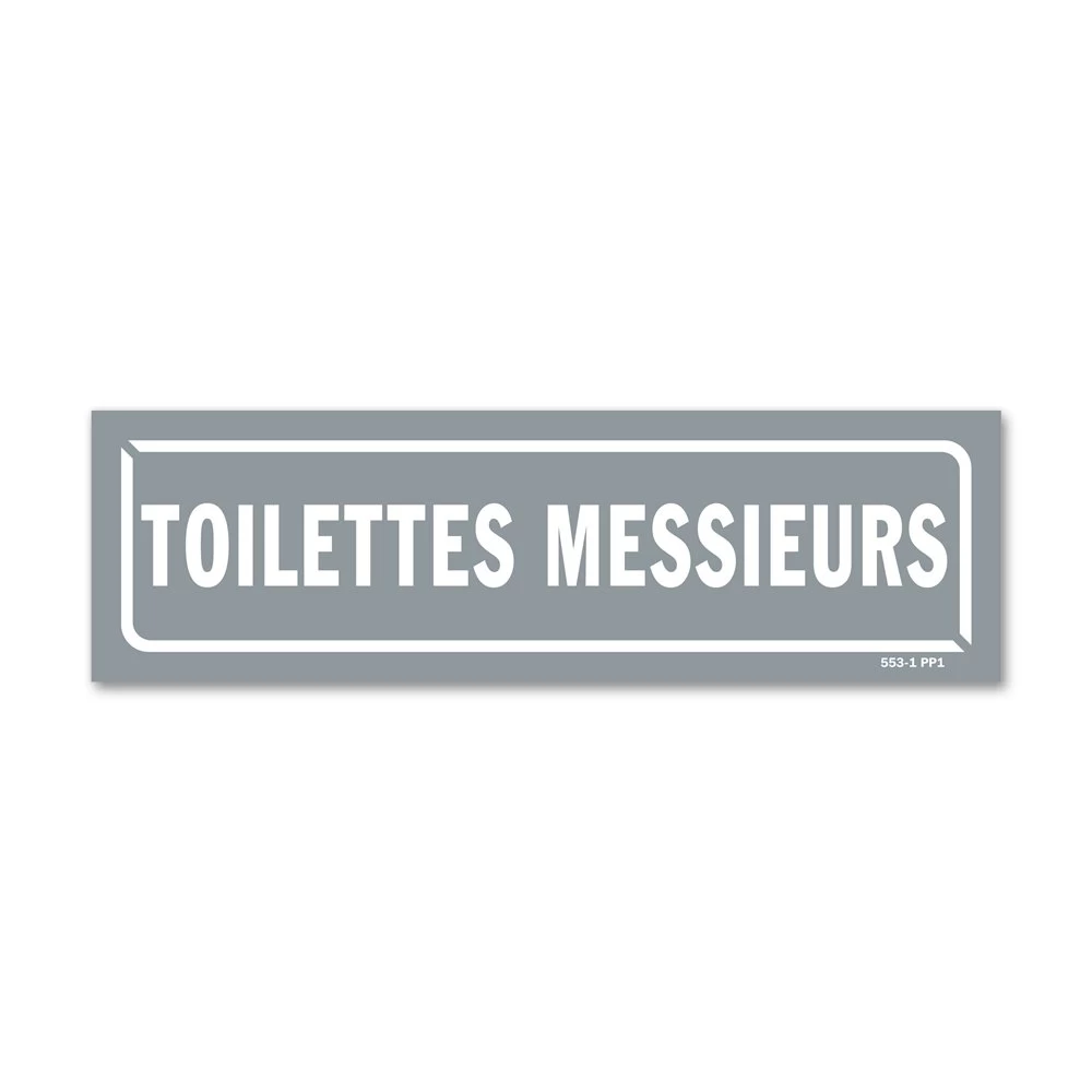 Ce panneau de couleur indique la présence et l’emplacement des toilettes réservés aux hommes.