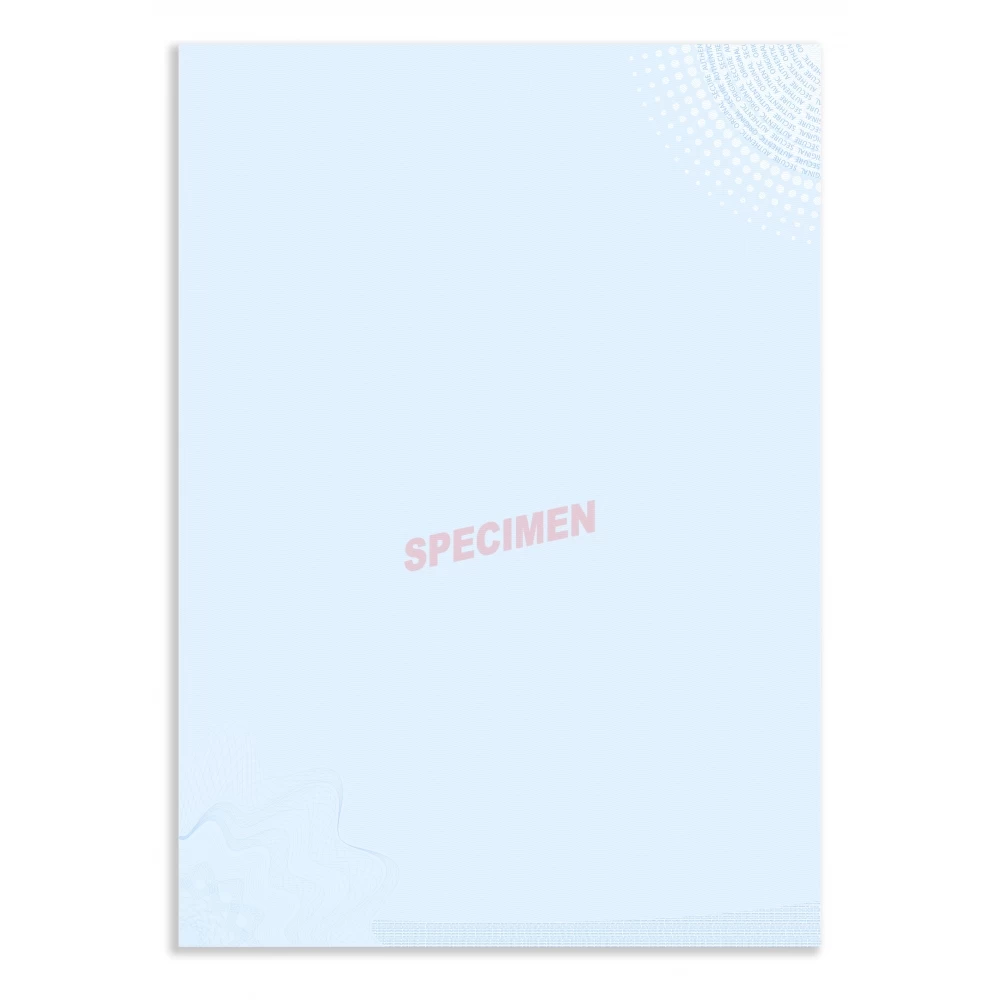 | Papier réactif aux solvants | Réaction visible à l’œil nu, du papier à toute tentative d’effacement chimique. Le revêtement spécial augmente l’adhésion du toner de 50% afin de protéger de potentielles fraudes. | |