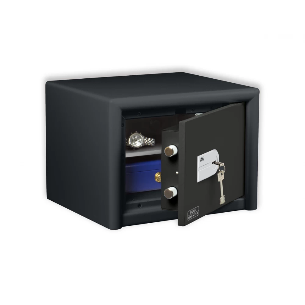 Ce petit coffre-fort ignifuge fabriqué par BURG-WÄTCHER répond à toutes les normes de sécurité européennes en vigueur. De plus, il respecte un degré de sécurité S2 selon DIN EN 14450 et un degré de sécurité B selon VDMA 24992, 5/95. Il s’agit d’un coffre classe 1, avec une valeur assurable allant jusqu’à 25 000€.